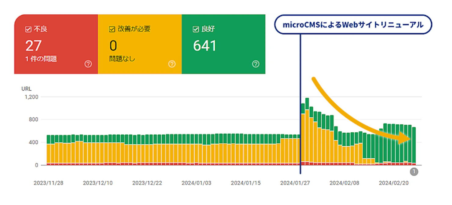 Core Web Vitalsのスコアも、以前は「改善が必要」なページが多かったのですが、リニューアル後すぐにオールグリーンの状態になりました。Next.jsのようなモダンな技術とmicroCMSの組み合わせで、これだけの効果が得られたと考えています。